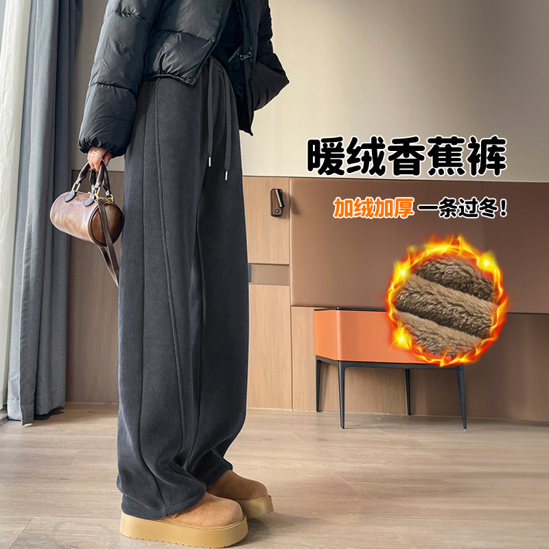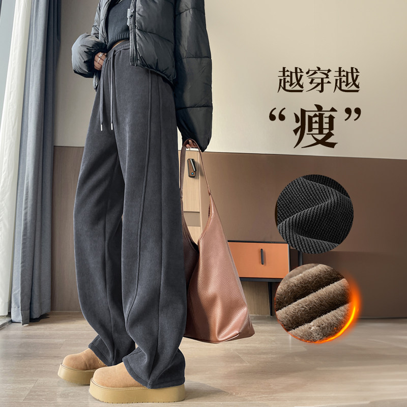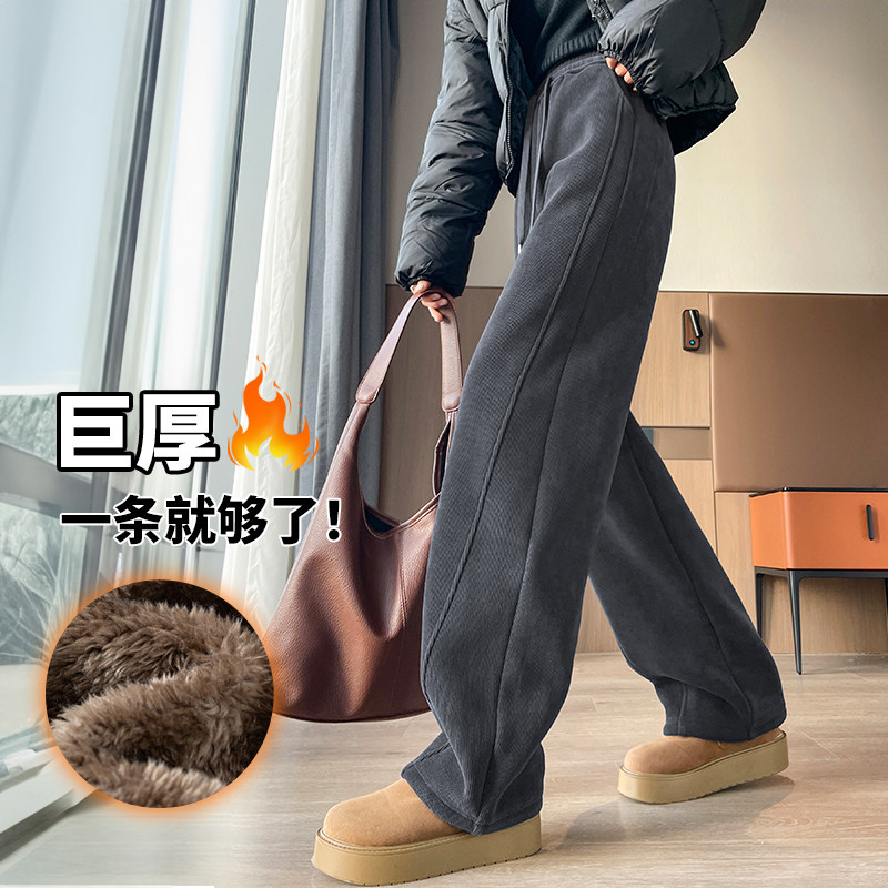糯米裤女羊羔绒垂坠感软糯加绒加厚秋冬韩系慵懒松弛感阔腿裤TB