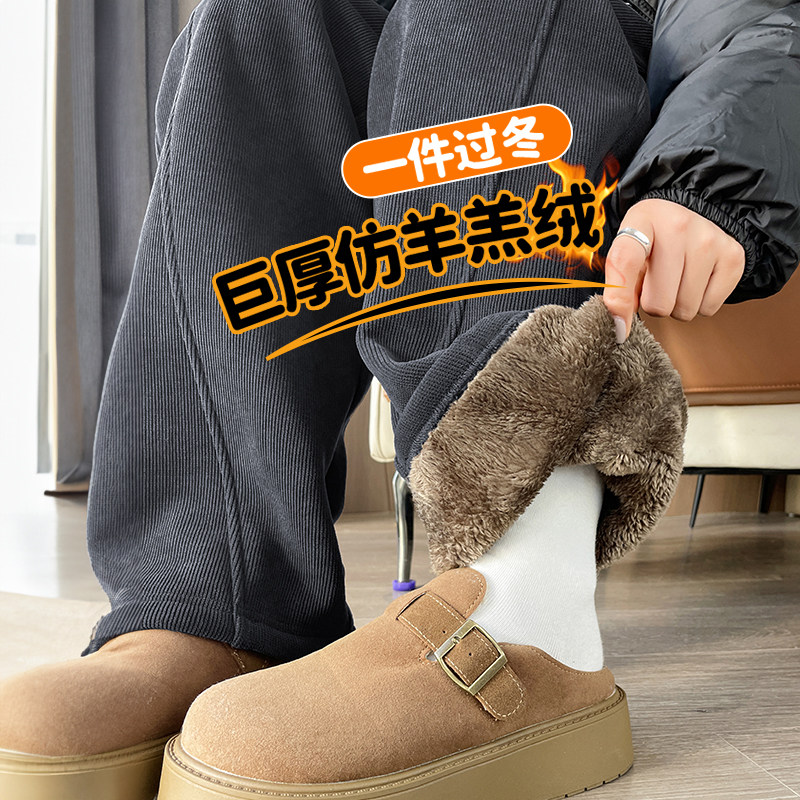宽松直筒休闲高腰垂感保暖裤子东北外穿棉裤