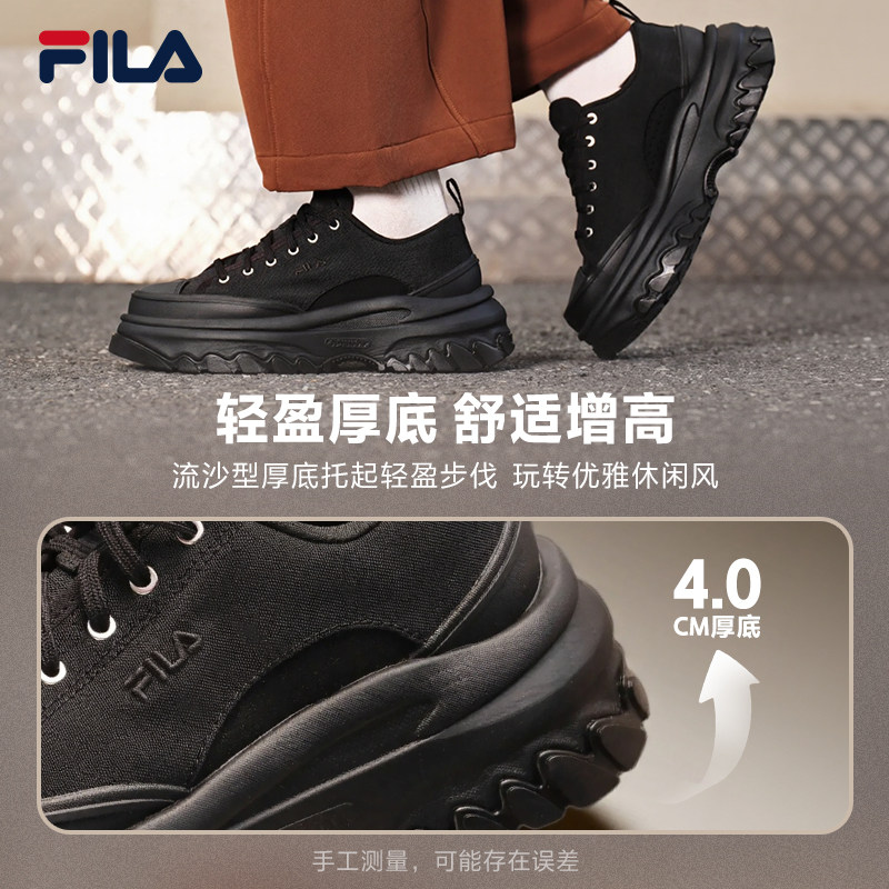 胖胖底|FILA斐乐官方LAVA女鞋厚底帆布鞋增高休闲鞋运动鞋黑色鞋