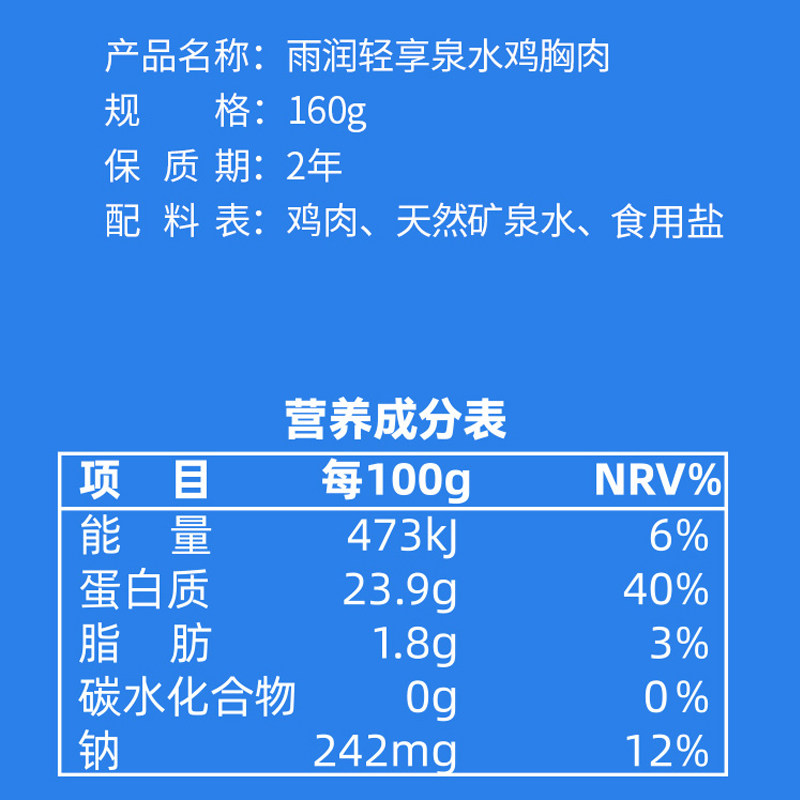 雨润泉水鸡胸肉罐头160g即食轻享健身代餐饱腹低脂高蛋白熟食品