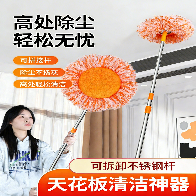 天花板清洁神器掸子除尘扫灰家用高处屋顶清理灰尘拖把加长窗墙面