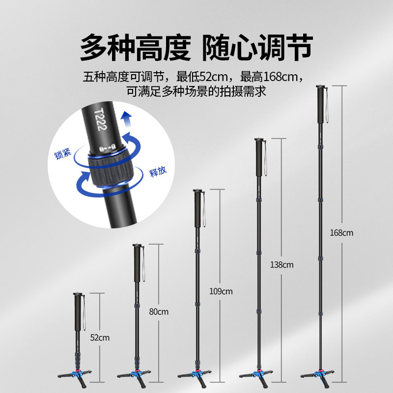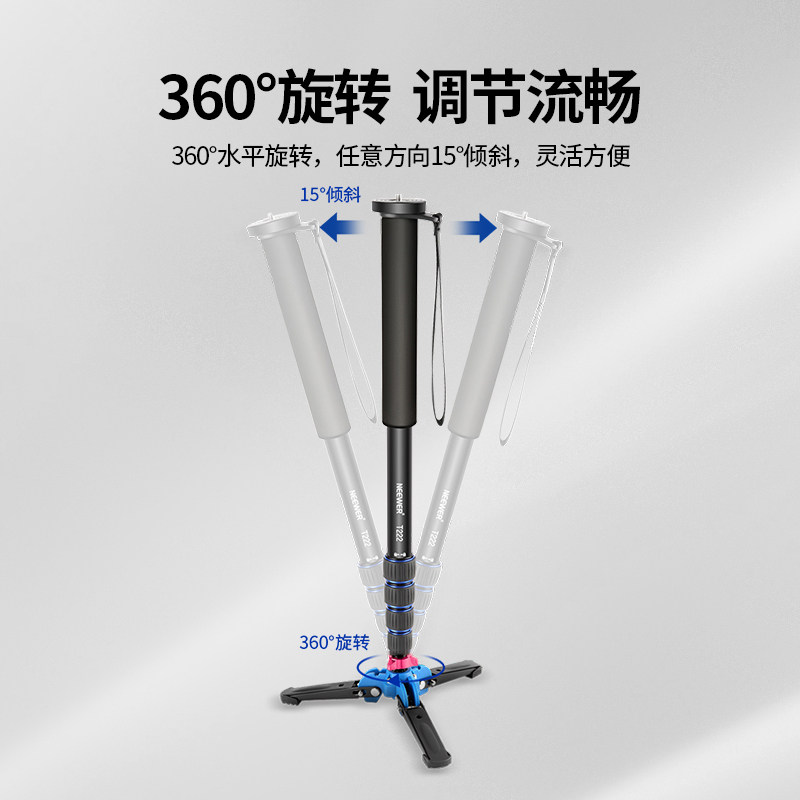 NEEWER/纽尔 T222独脚架铝合金单脚架单反相机微单摄像机稳定器专业支架户外旅行登山杖摄影录像比赛婚礼