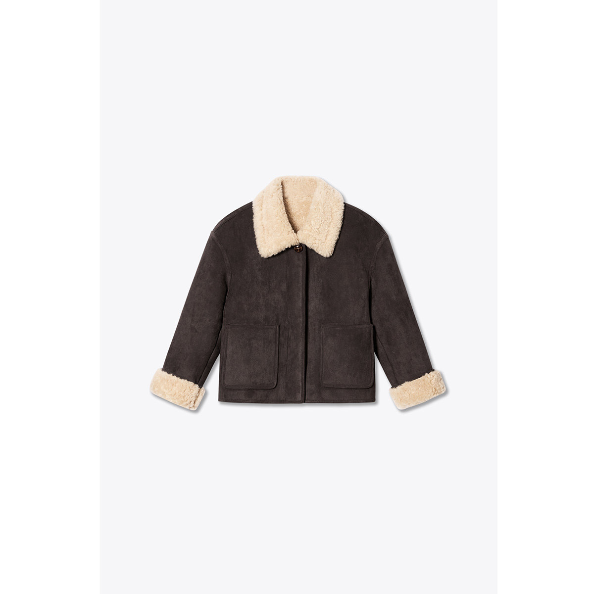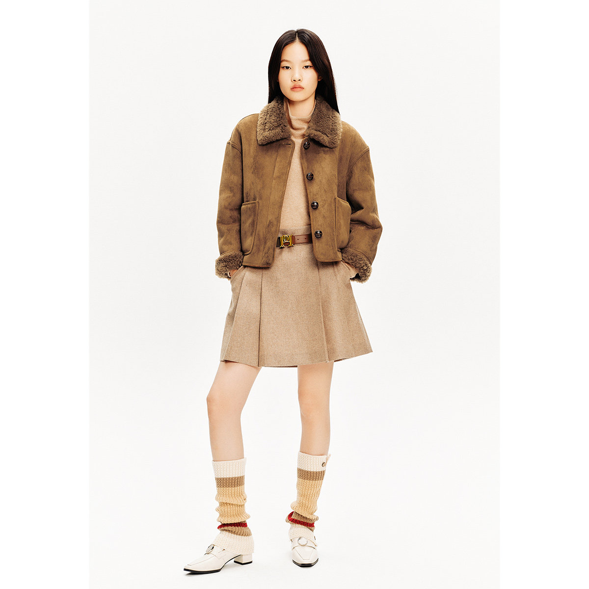 PSALTER诗篇学院风减龄翻领短款绵羊毛内里皮草外套冬款