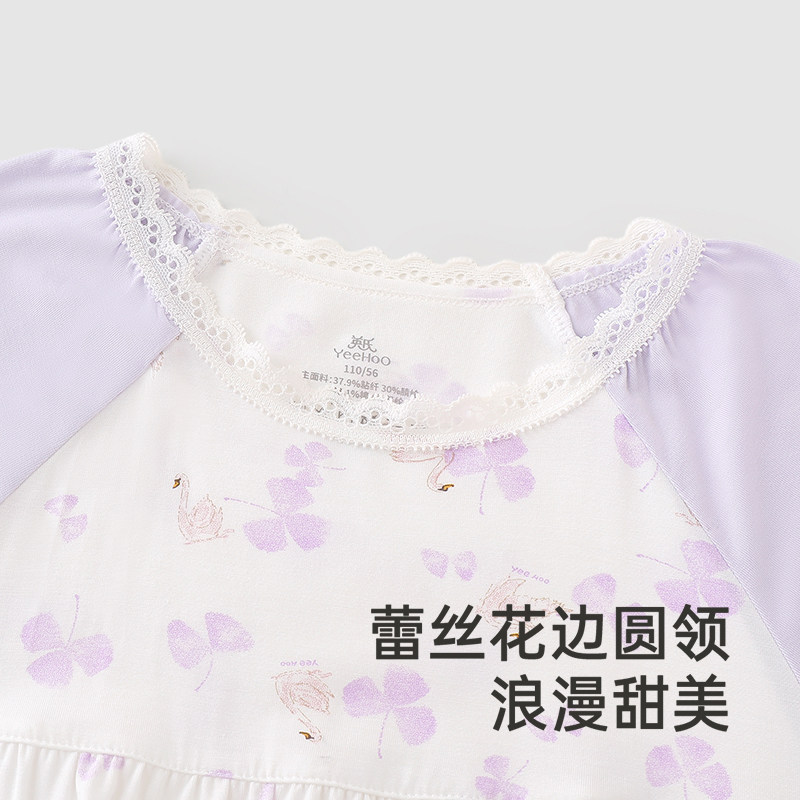英氏儿童家居服夏季透气女童睡裙7A抗菌短袖睡衣长裙中大童睡裙