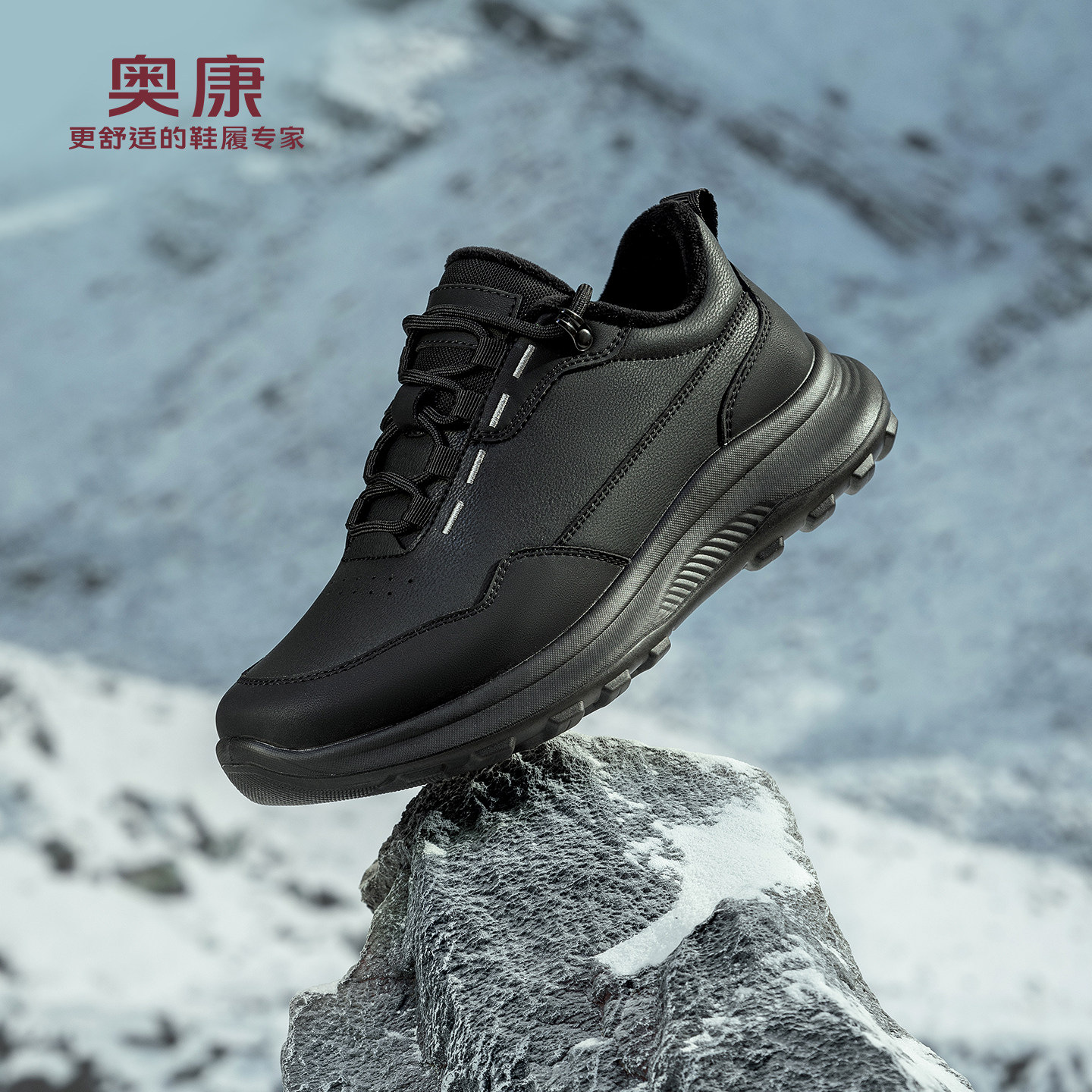 奥康 男鞋2025冬季新款休闲运动鞋加绒保暖厚实百搭黑色商务皮鞋
