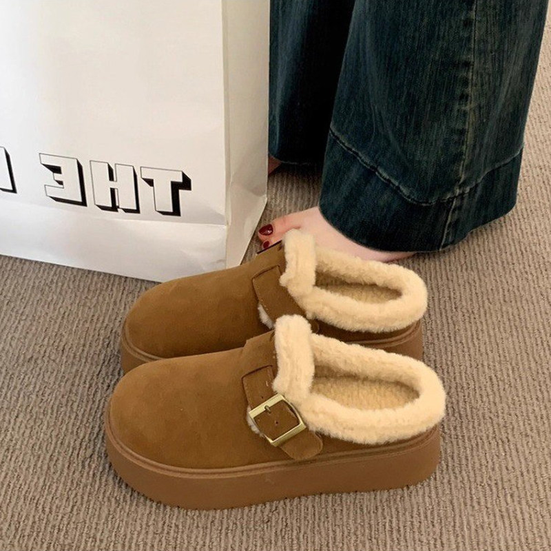 周雨彤同款厚底勃肯鞋女2025新款冬季加绒半拖鞋外穿增高穆勒鞋子