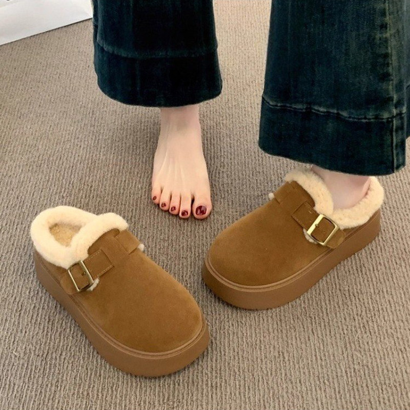 厚底勃肯鞋女2025新款冬季女鞋加绒半拖一脚蹬穆勒鞋子增高博肯鞋