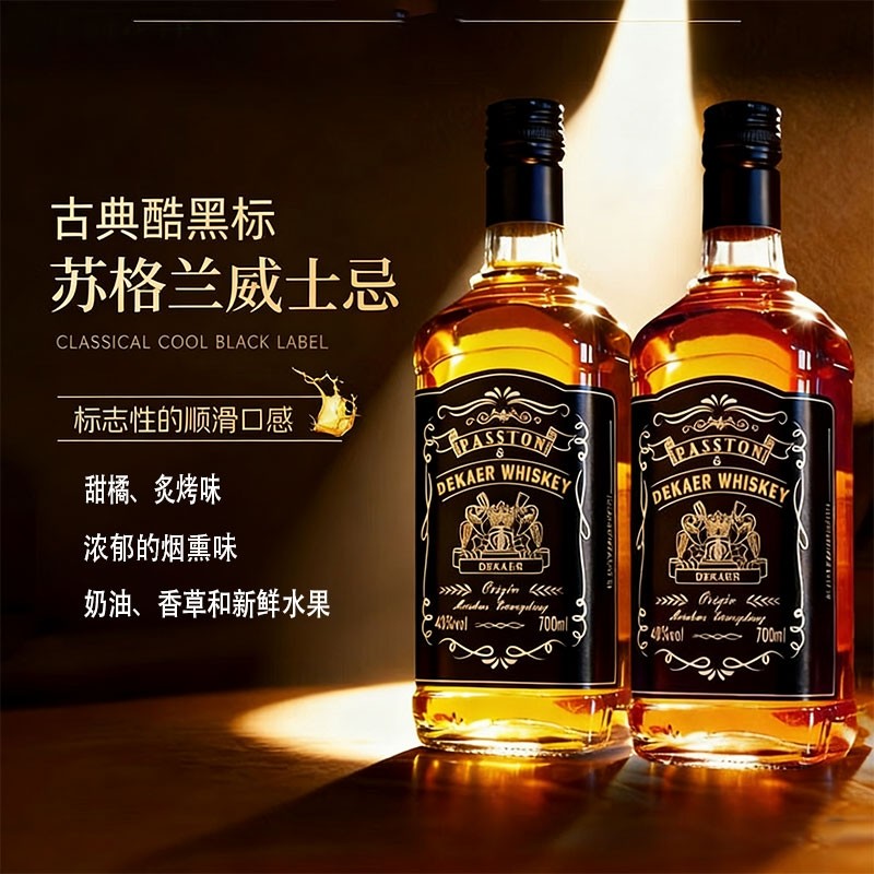 洋酒威士忌40度烈酒苏格兰工艺基酒调酒泥煤烟熏味木桶酿基酒调酒