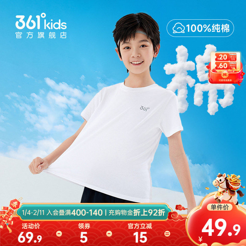 361度童装男童短袖纯棉儿童t恤2026夏季新款女童运动短T夏装半袖