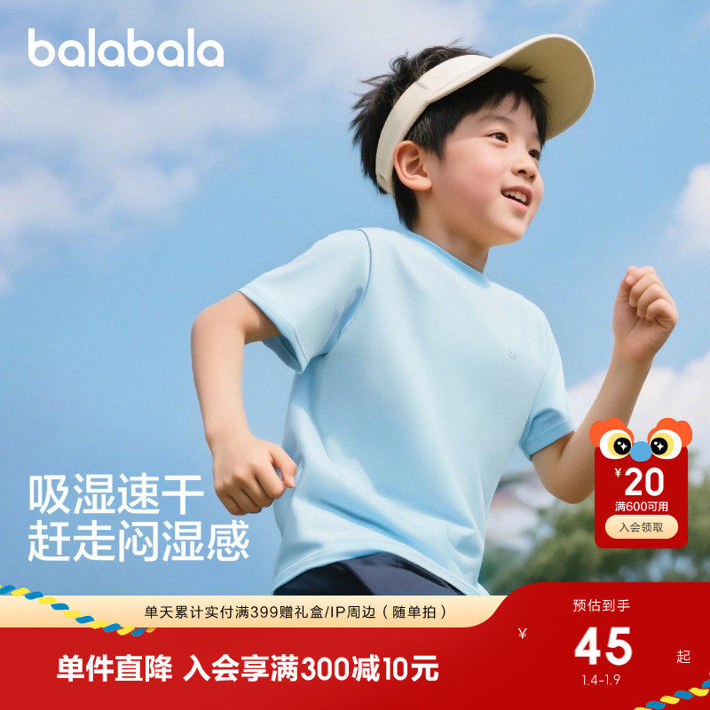 巴拉巴拉童装男童短袖t恤女童夏季新款上衣中大童衣服儿童速干衣
