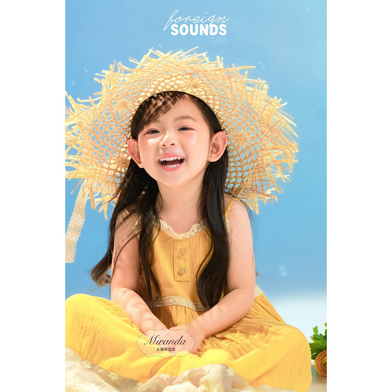 夏天儿童摄影女童夏季镂空拉菲草帽影楼拍照道具女孩时尚写真照