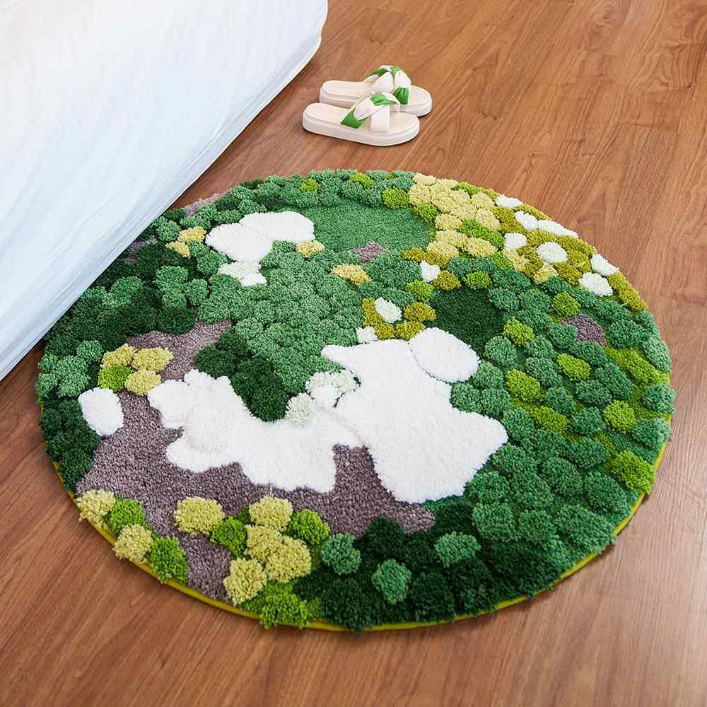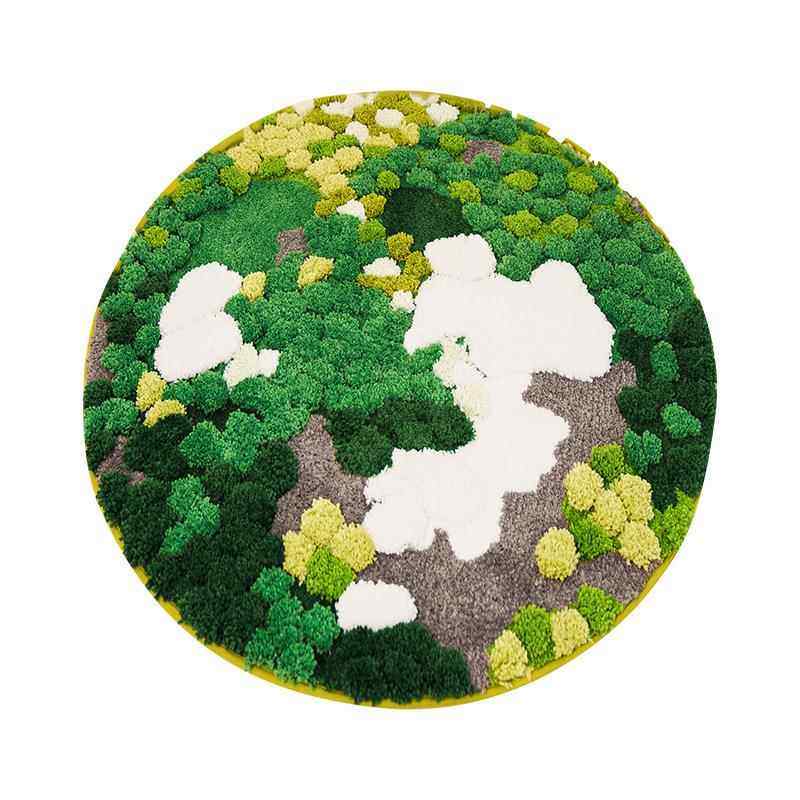 创意圆形苔藓森林植绒地毯 客厅卧室床边地毯可爱轻奢客厅毯