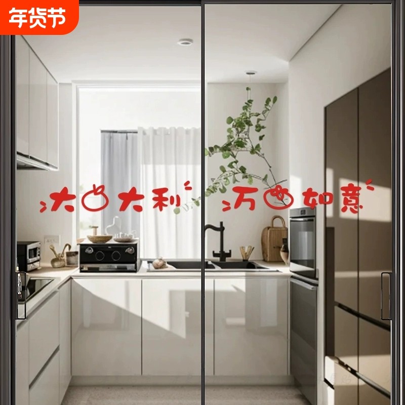 乔迁厨房玻璃门防撞贴纸推拉移门腰线装饰墙贴画新年窗花防水透明
