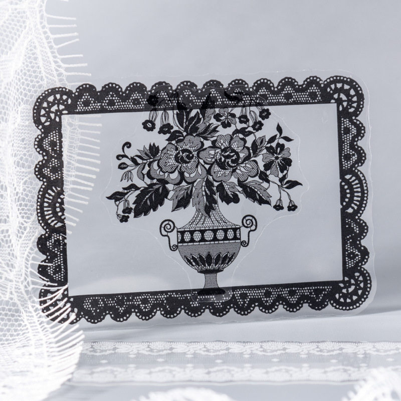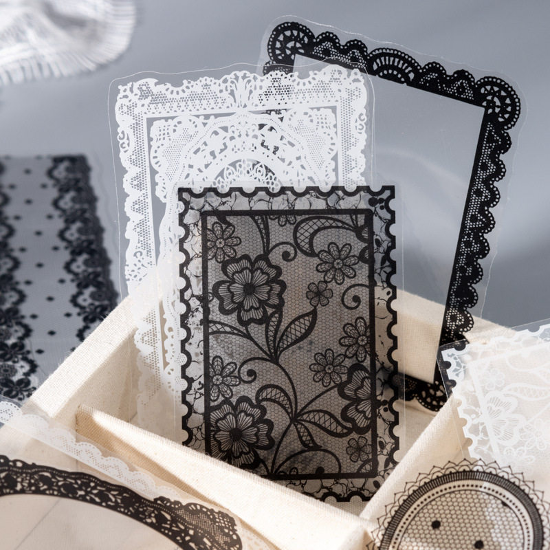 100张防水PET贴纸包 蕾丝学院系列 黑白蕾丝主题手账拼贴素材贴画