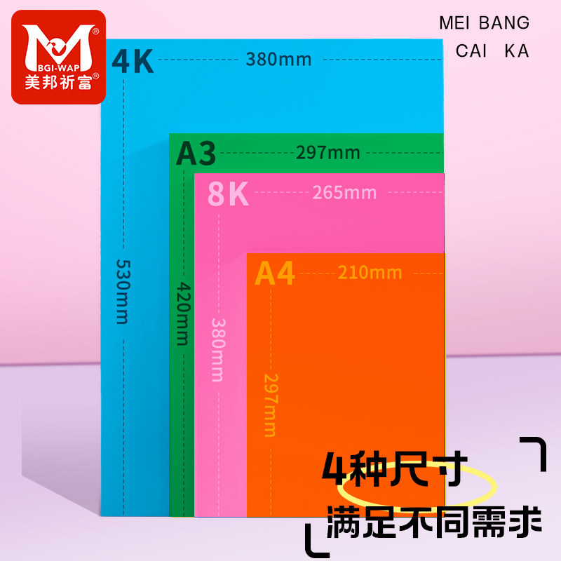 彩色卡纸a4硬卡纸8k幼儿园小学生专用a3大尺寸手工折纸4k彩色卡纸手工纸儿童剪纸彩色黑色白色大张绘画纸加厚