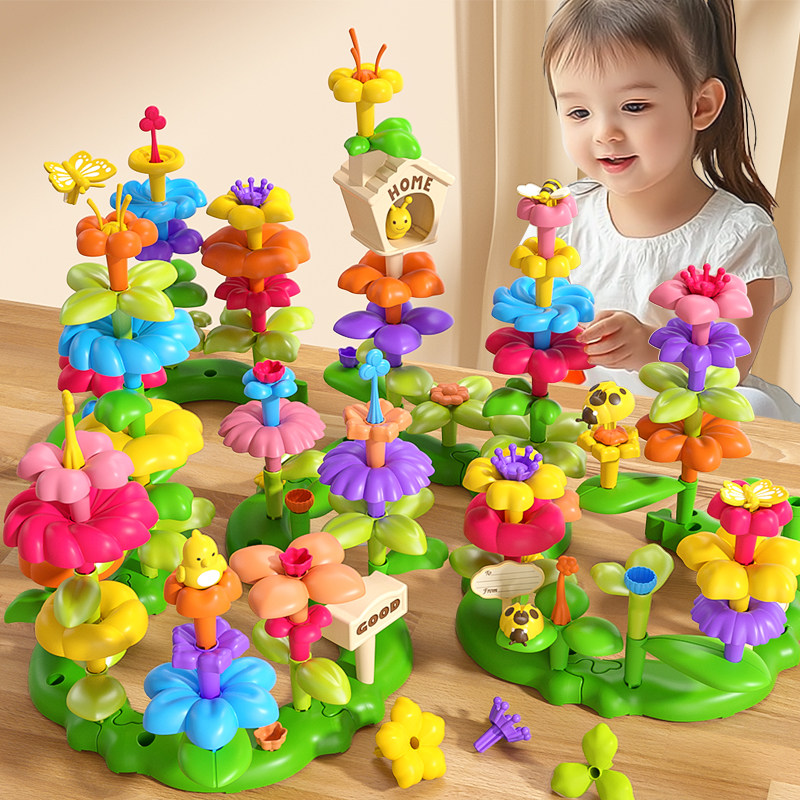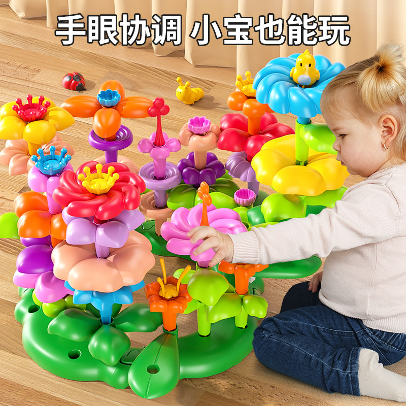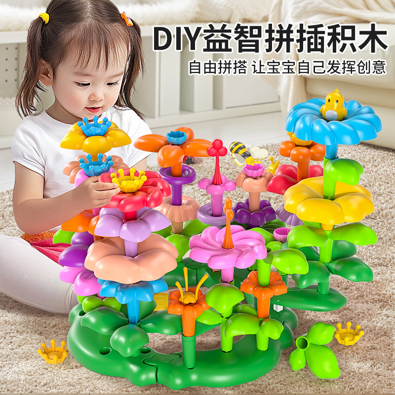 百变花园积木花diy拼接宝宝3花朵开发智力儿童4益智5女孩插花玩具