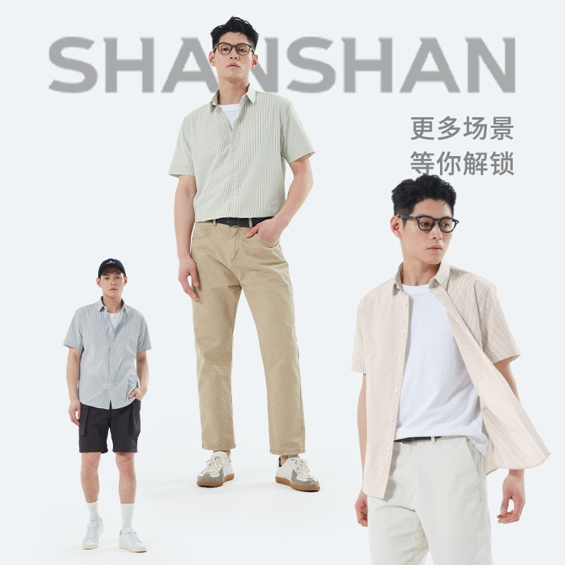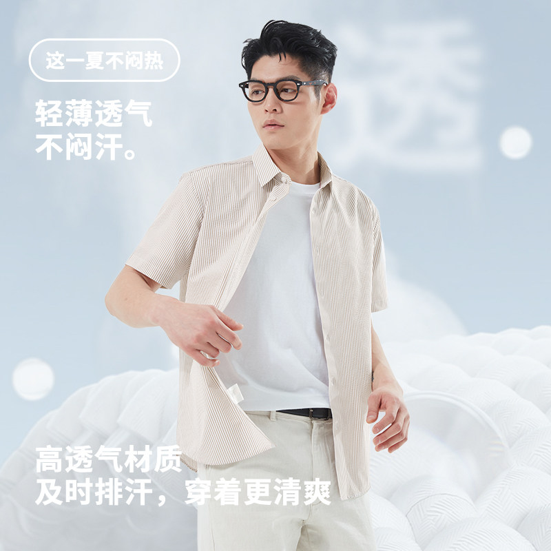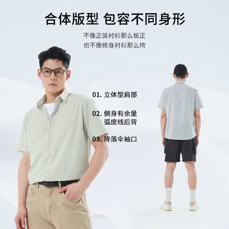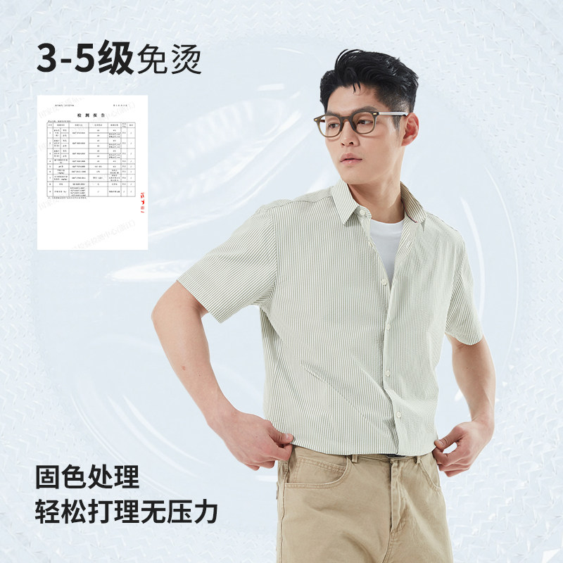 杉杉奥莱肌理感泡泡纱2025夏季新款男士短袖衬衫凉感外穿衬衣男款