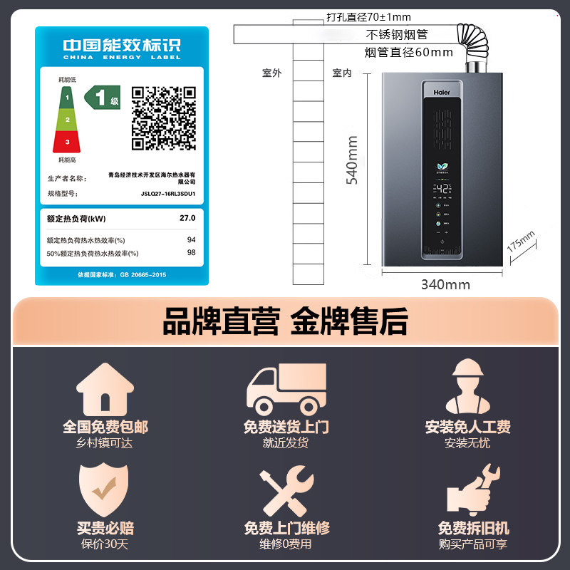 海尔燃气热水器16升家用超一级能效水伺服双增压零冷水恒温节能