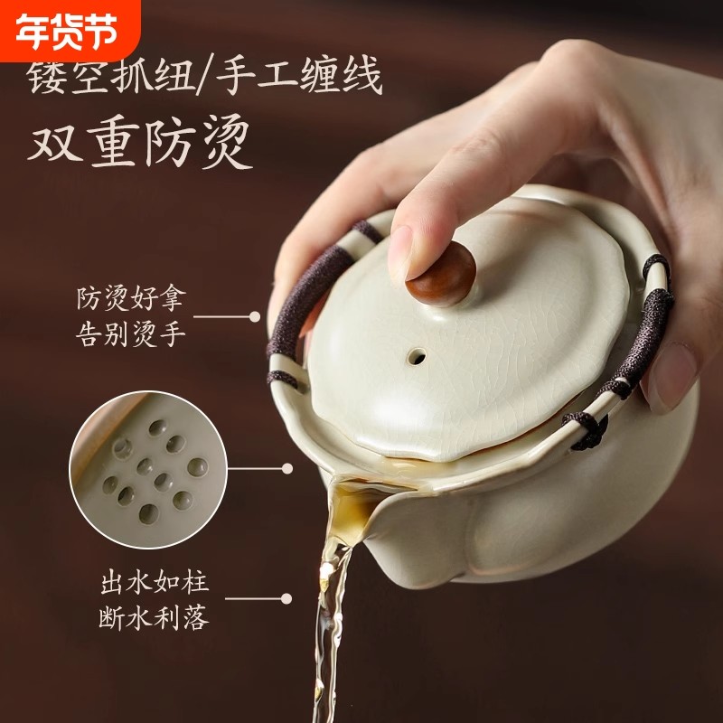 米黄汝窑盖碗茶杯单个高档泡茶壶手抓壶茶具茶碗带盖一人泡茶杯