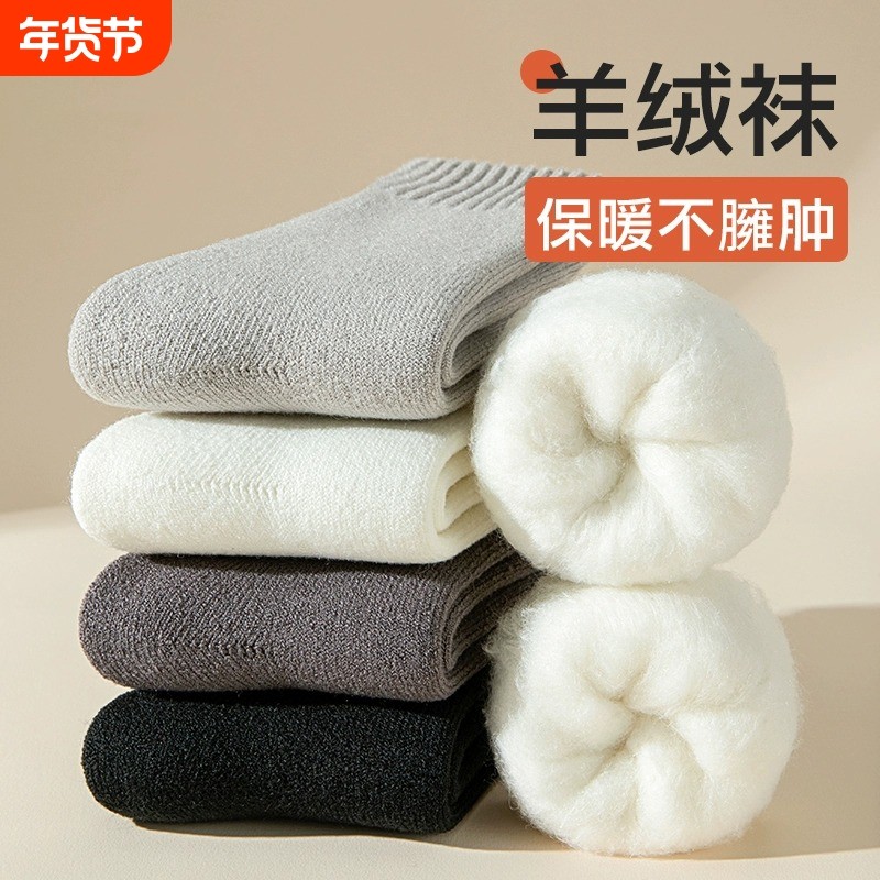 厚羊绒袜子男士秋冬款保暖中筒袜加绒加厚地板睡眠袜冬天羊毛长袜