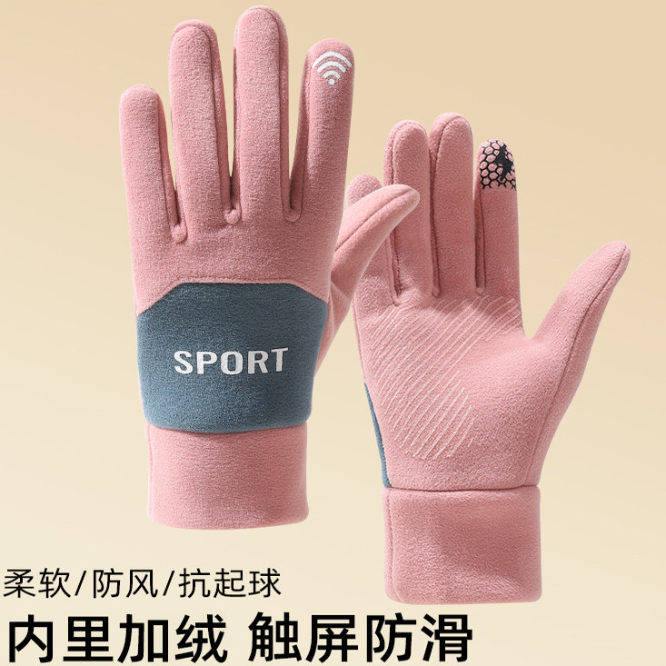 保暖手套女秋冬触屏加厚户外骑行开车德绒防风运动手套防冻男女款