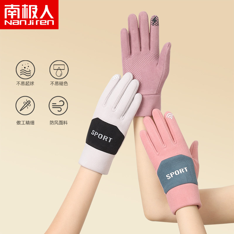 南极人保暖手套女冬季加绒触屏加厚户外防寒骑行电动车运动手套A