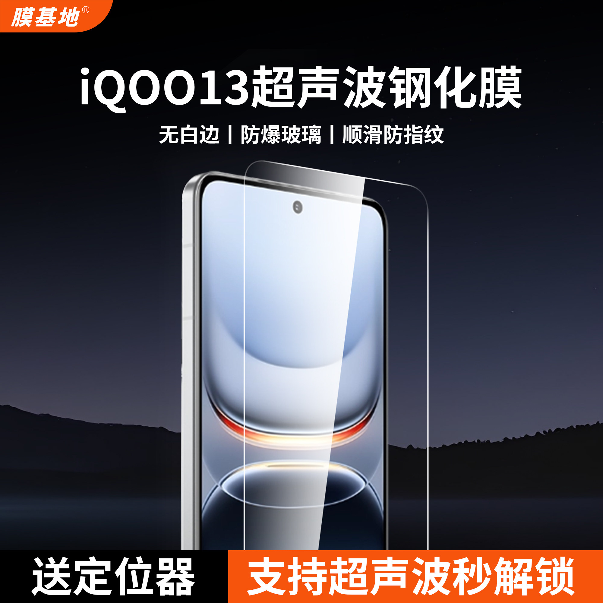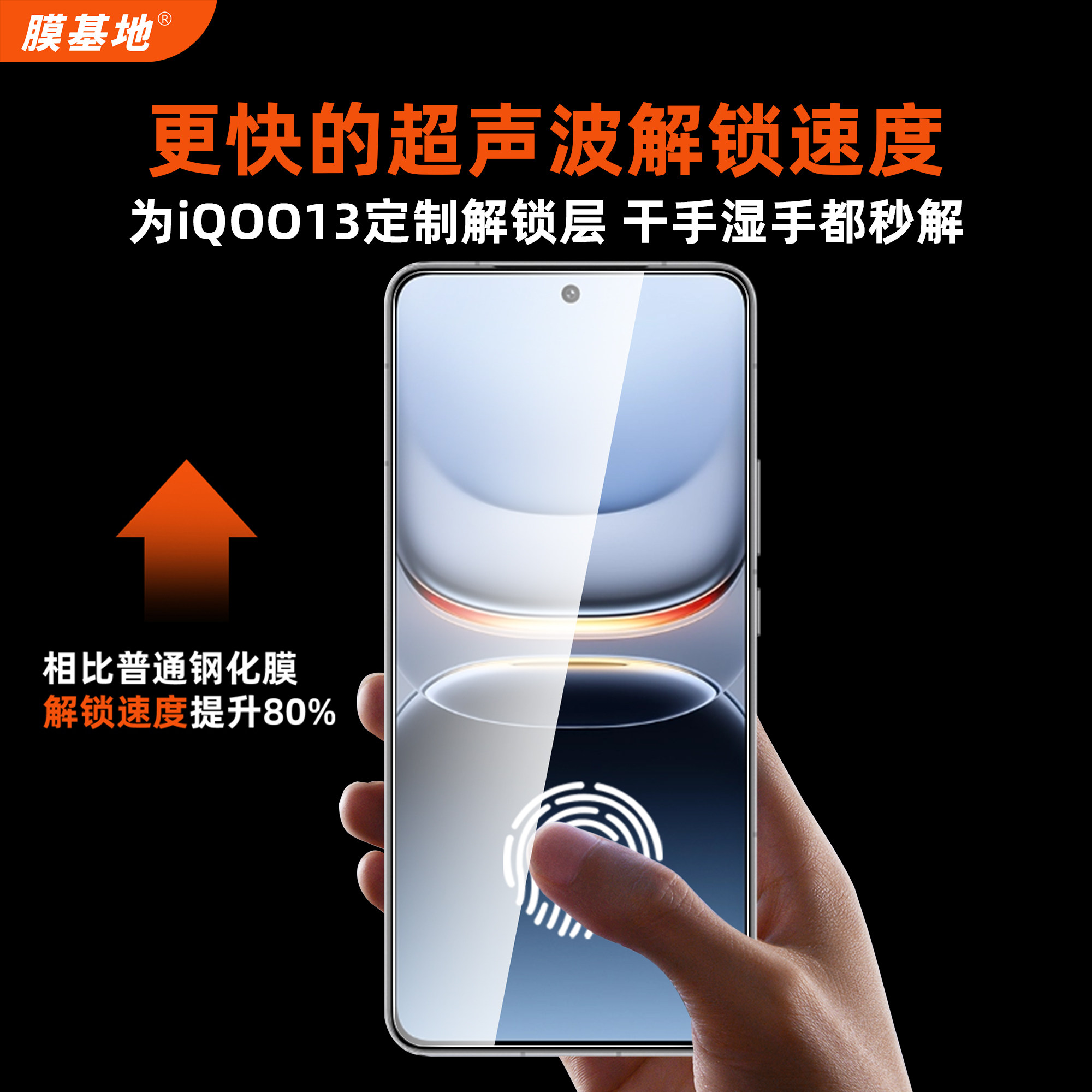 膜基地适用iqoo13钢化膜支持超声波指纹秒解锁iqoo15高清防指纹爱酷手机膜无白边无孔全透明非全屏