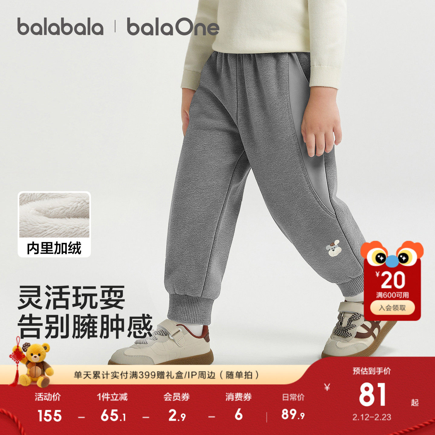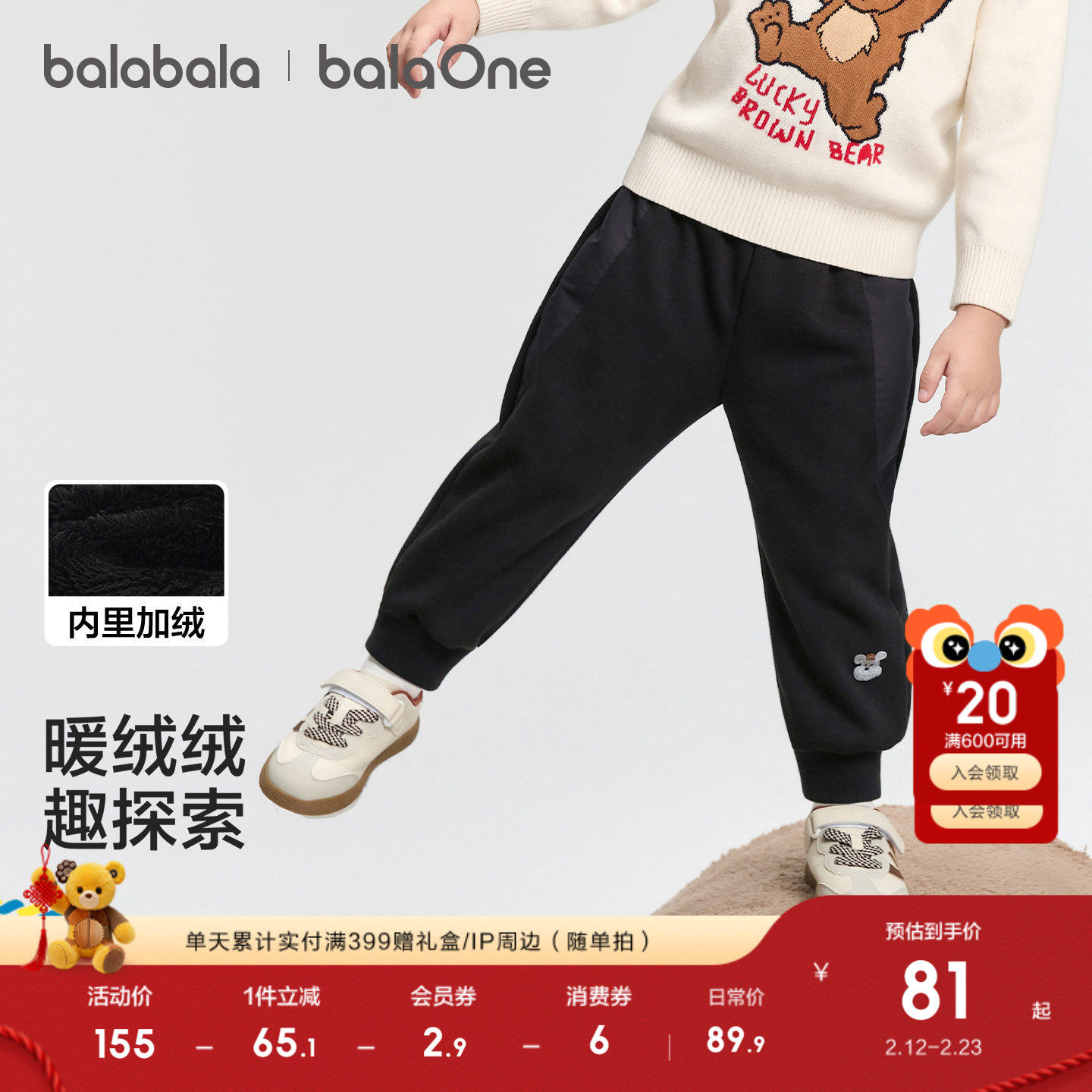 巴拉巴拉童装宝宝加绒长裤男女童2025冬装新款儿童厚束脚运动裤子