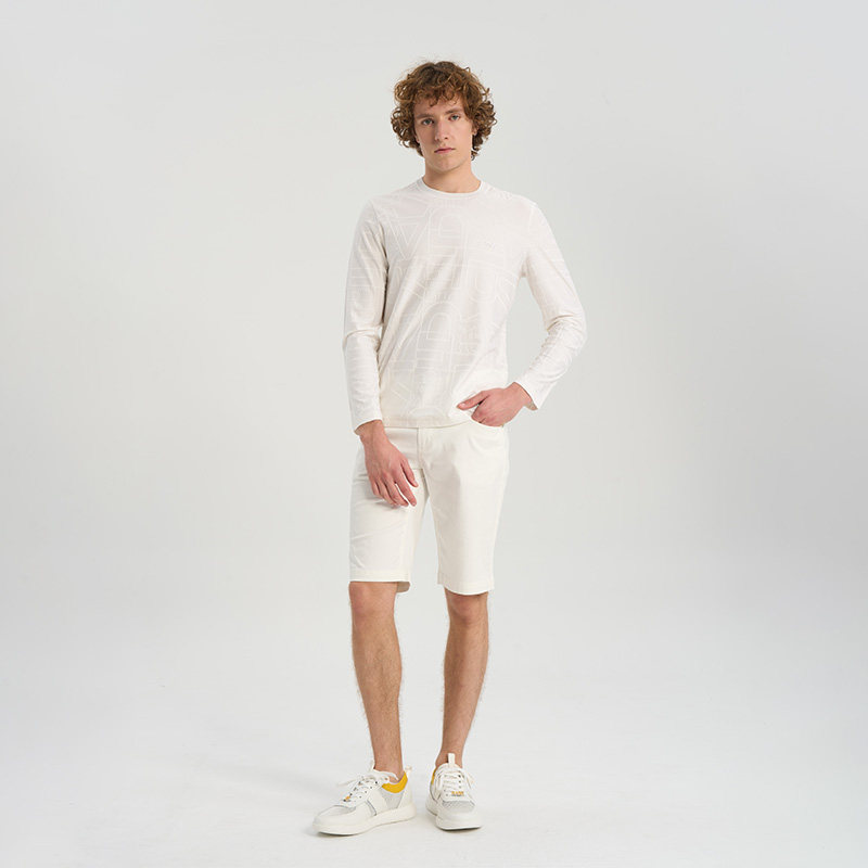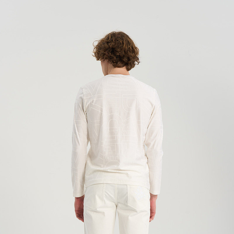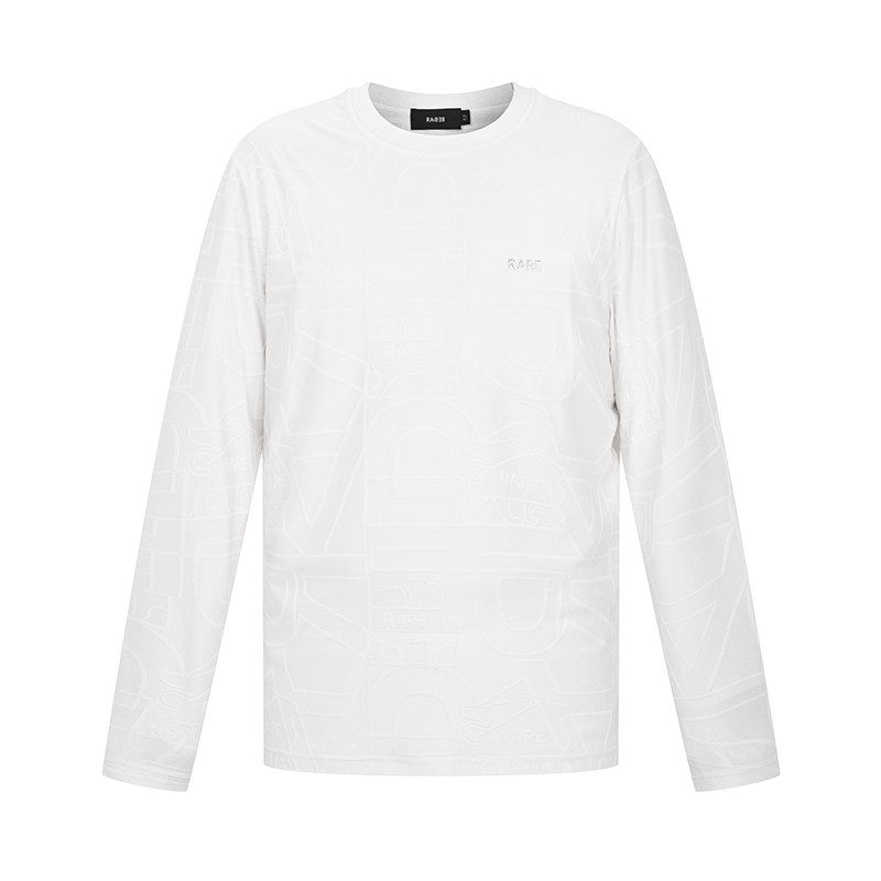 RARE威雅男装春夏新款白色长袖T恤满版线框字母提花丝绵长T男