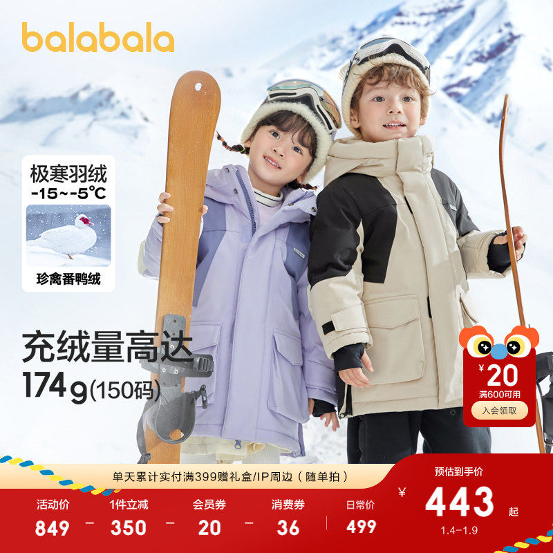 巴拉巴拉童装儿童羽绒服女童男童冬装加厚保暖防水宝宝外套潮流行