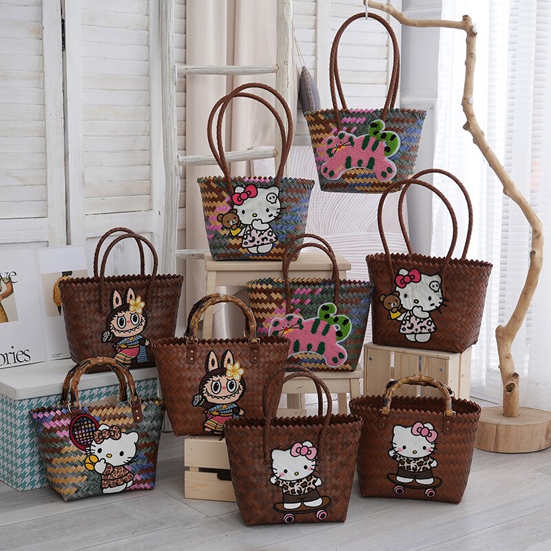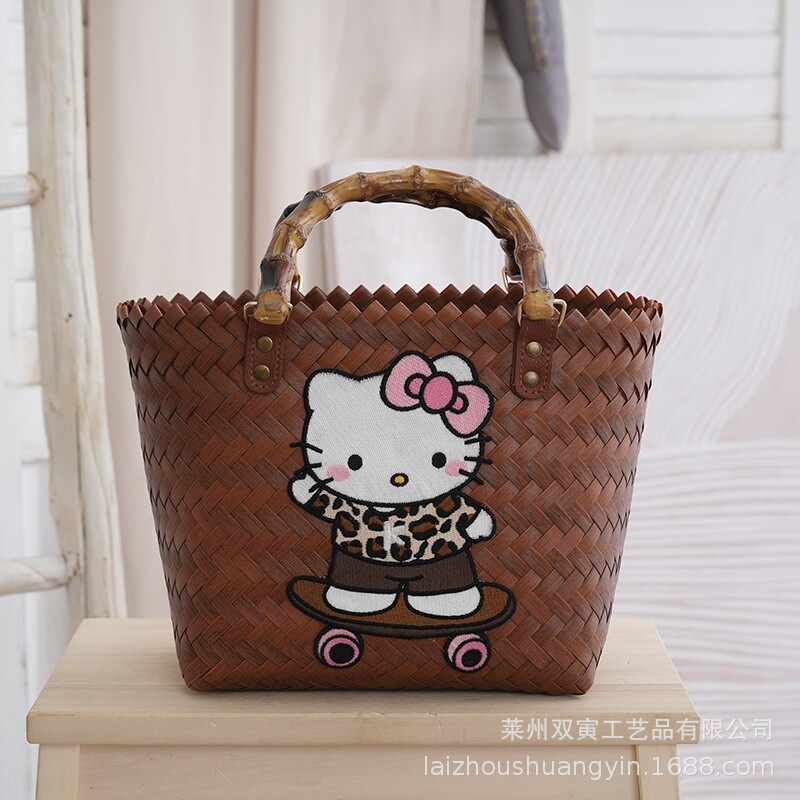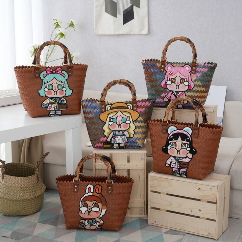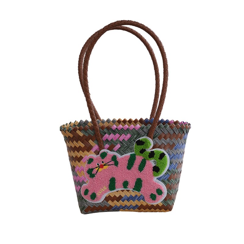 仿藤编藤条草编手工编织包包腋下包单肩包通勤包饭盒包托特包