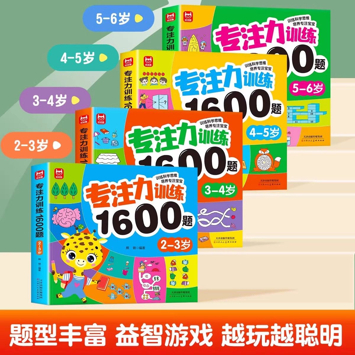 2-3-6岁儿童专注力思维训练1600题幼儿园宝宝早教启蒙思维逻辑迷宫注意力找不同训练书-5-6儿童益智奥数启蒙全脑开发