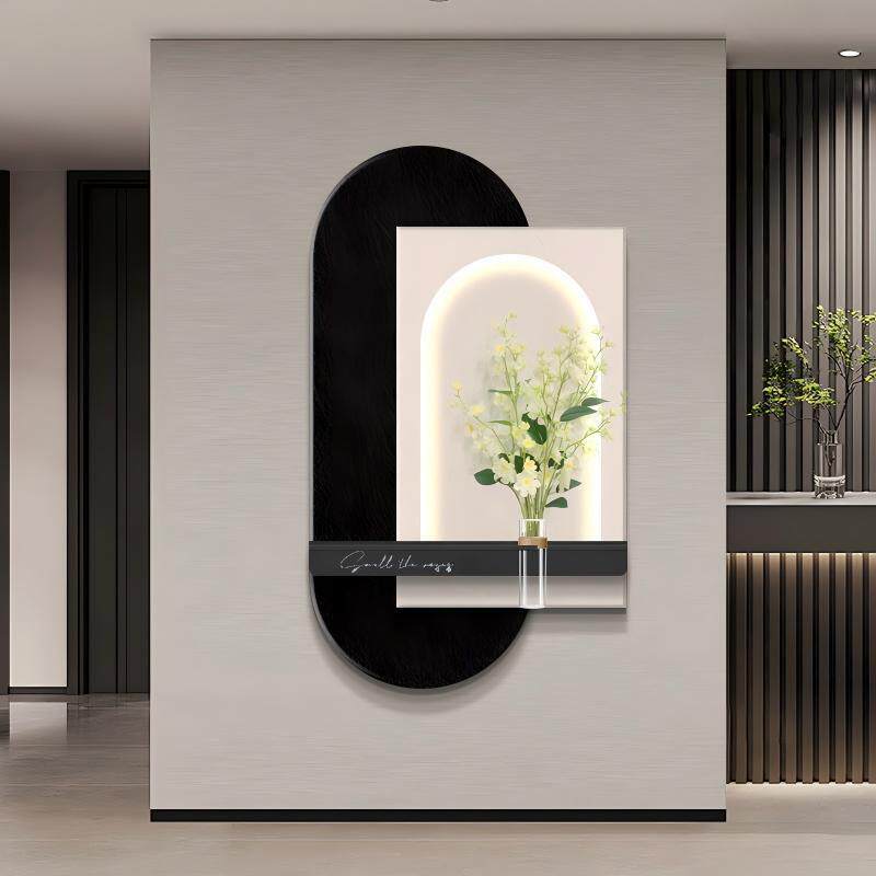 轻奢高级感入户门玄关装饰画水培绿植壁画走廊过道挂画实木雕刻