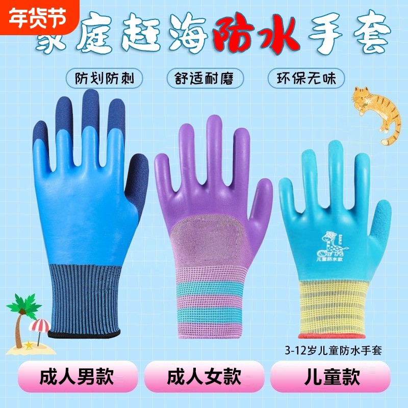 儿童防水手套赶海双面防刺采摘捡板栗防扎防咬灵活防护高弹乳胶