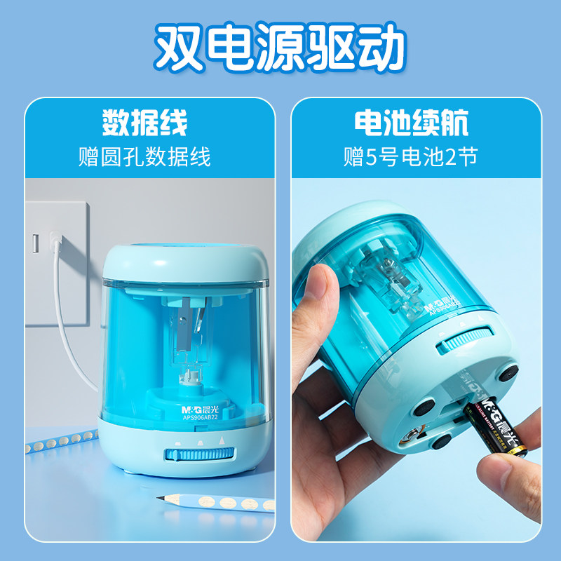 晨光文具电动自动削笔刀儿童小学生卷转笔刀全男孩铅笔刀削笔器女孩素描刨笔机旋绞笔刀销笔修笔充电学习用品