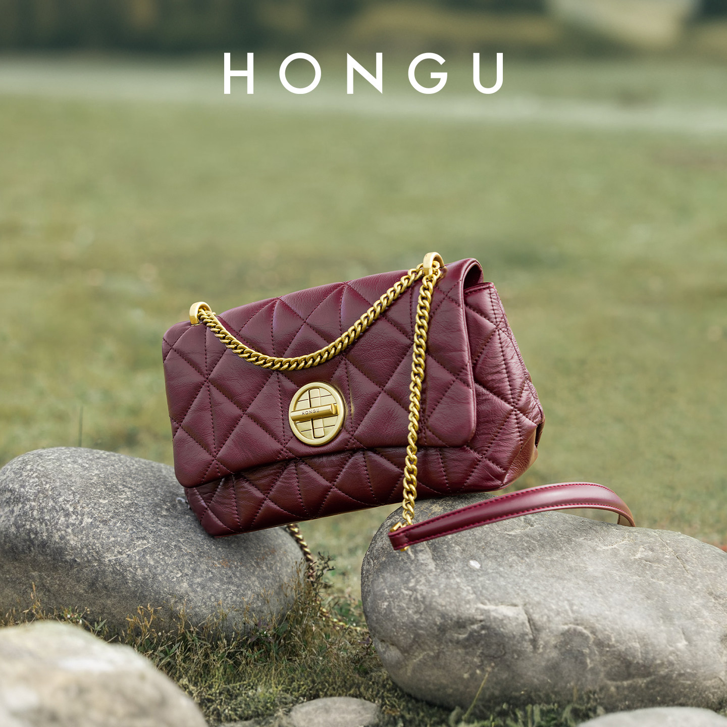 红谷包包女新款复古真皮单肩腋下包高级感链条包红色斜挎包女士包