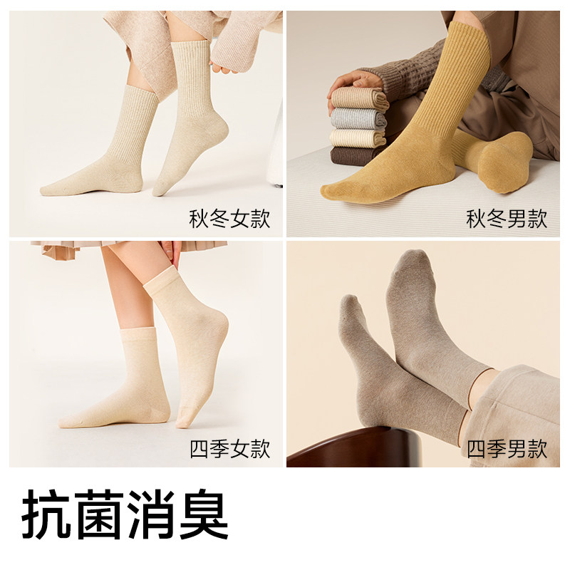 棉伙棉伴纯棉中筒袜抗起球男女纯色透气舒适耐穿日常百搭