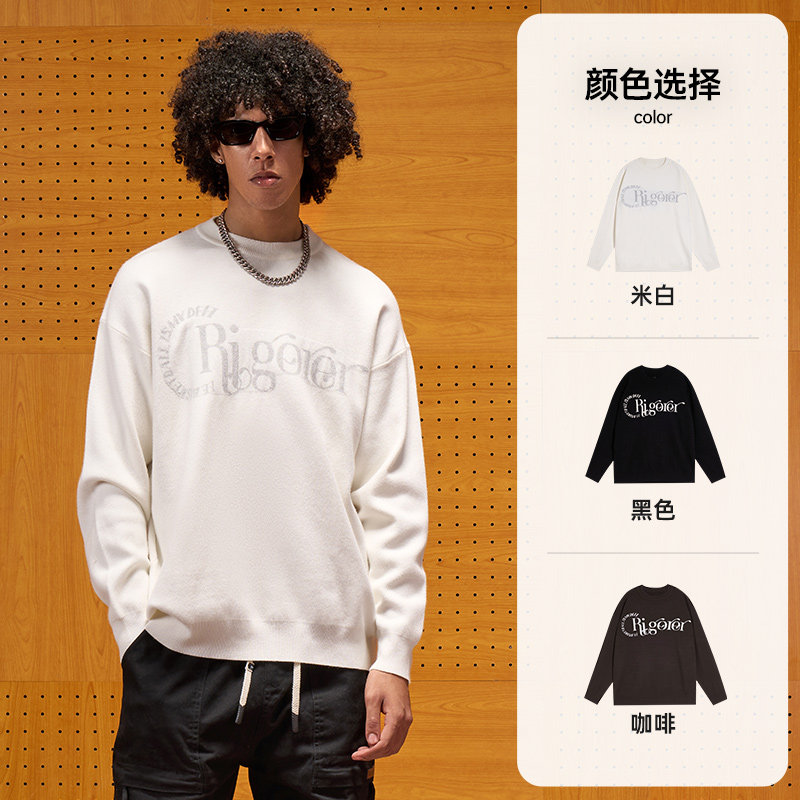 准者长袖毛衣男士春季新款运动休闲时尚圆领保暖厚款针织打底衫男