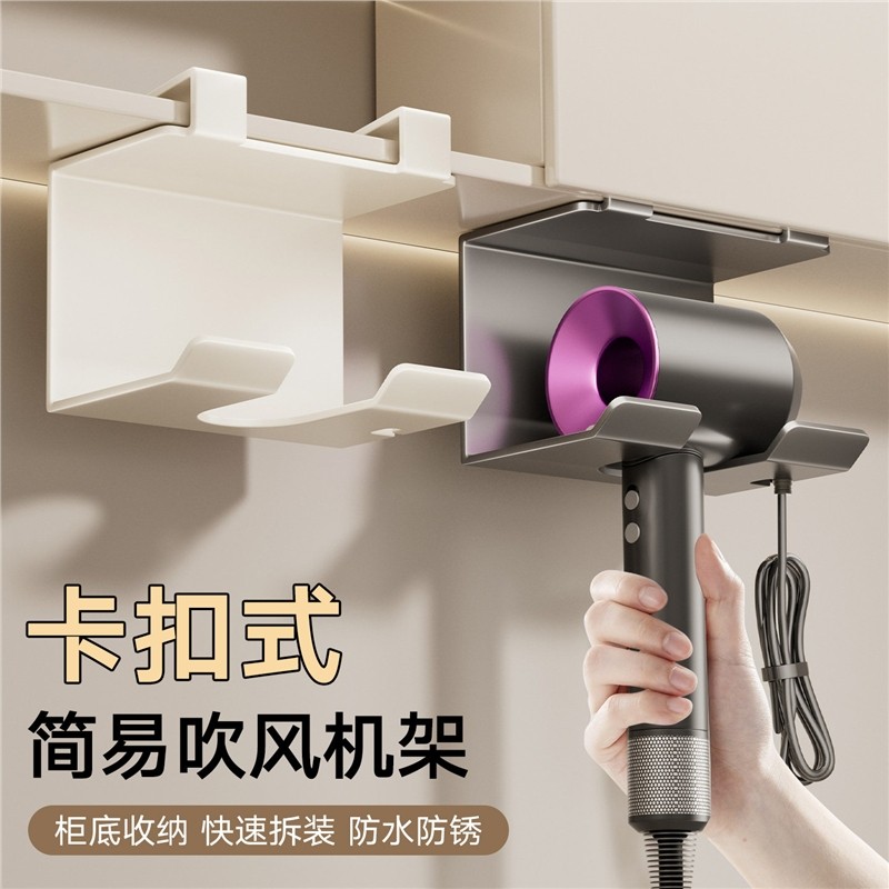 柜门下挂吹风机置物架卡扣式镜柜梳妆台免打孔卫生间电吹风支架子