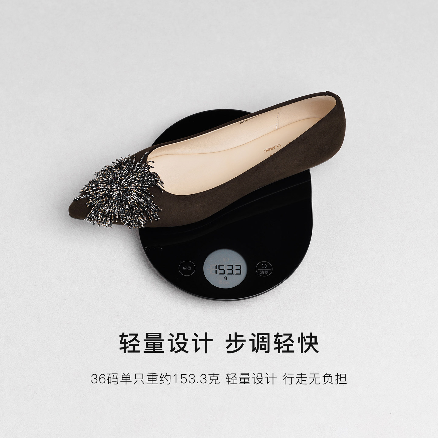 米霏!真皮~尖头铆钉平底单鞋女秋冬浅口内增高软底瓢鞋大码女鞋
