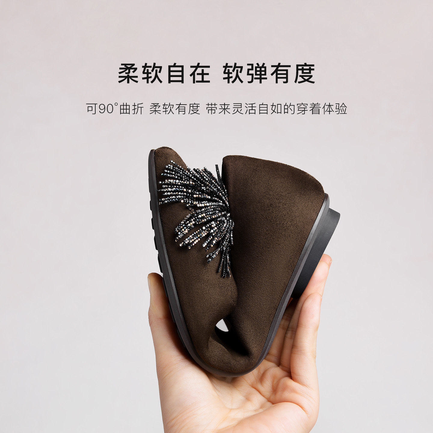 REEMOOR睿慕2025冬季新款法式复古流苏平底单鞋女浅口蛋卷鞋通勤