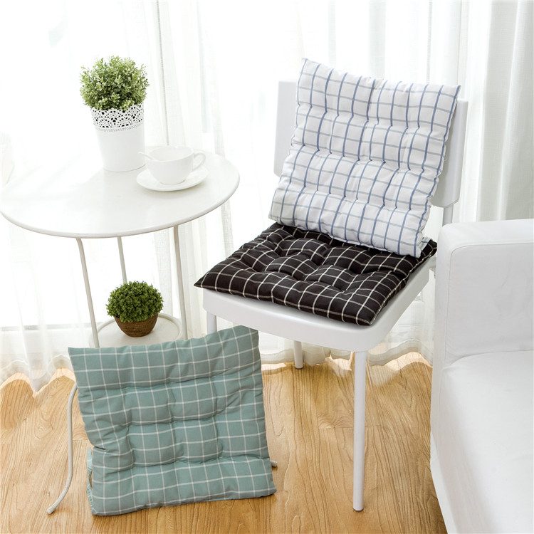 欧式简约现代格子加厚坐垫椅垫冬季办公室学生汽车座垫子防滑系带