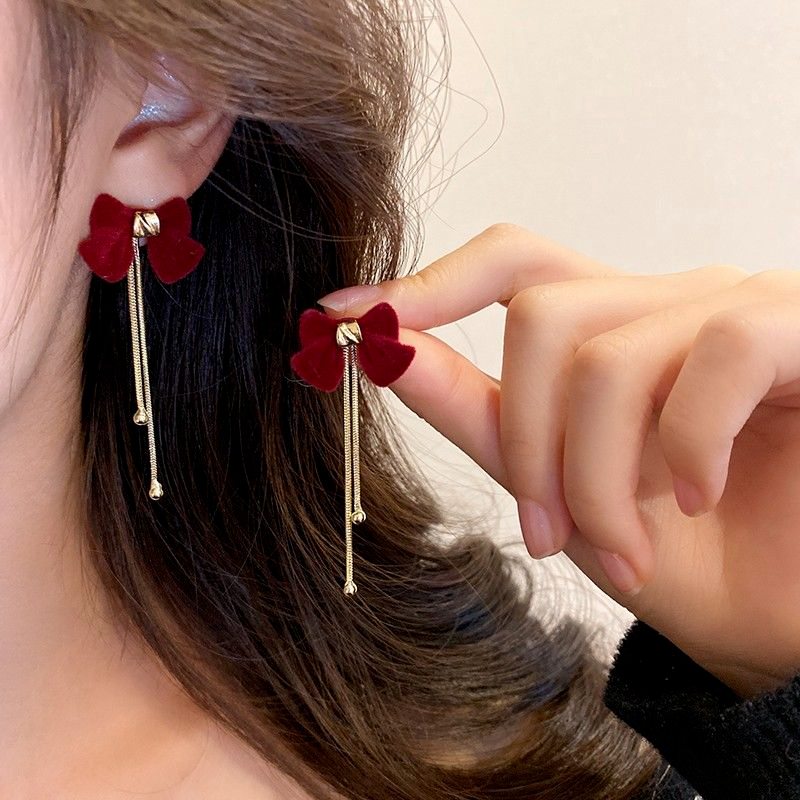过年丝绒花朵耳夹女气质高级感轻奢耳钉耳环大气秋冬新年红色耳饰