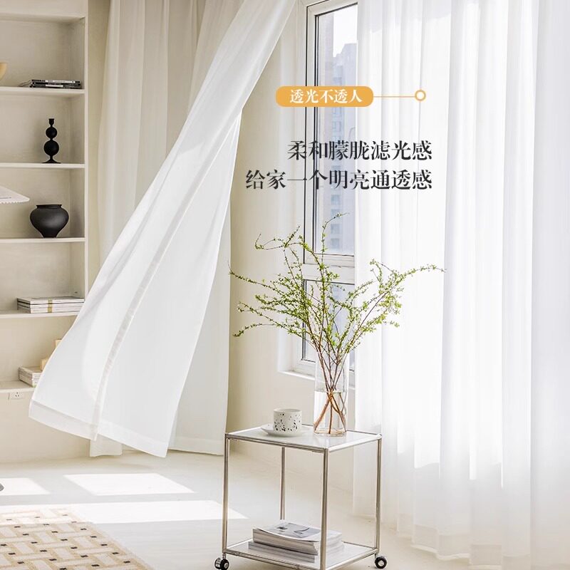纱帘透光不透人3米以上加高超长3.5米白色幻影纱窗帘金刚纱无拼接