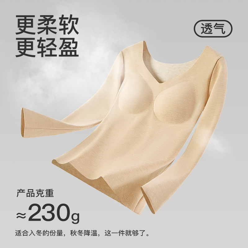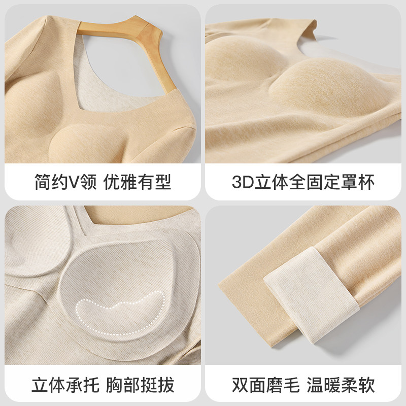 保暖内衣女士带胸垫无痕加绒发热内搭上衣羊绒蚕丝2025新款秋衣冬