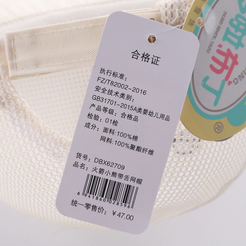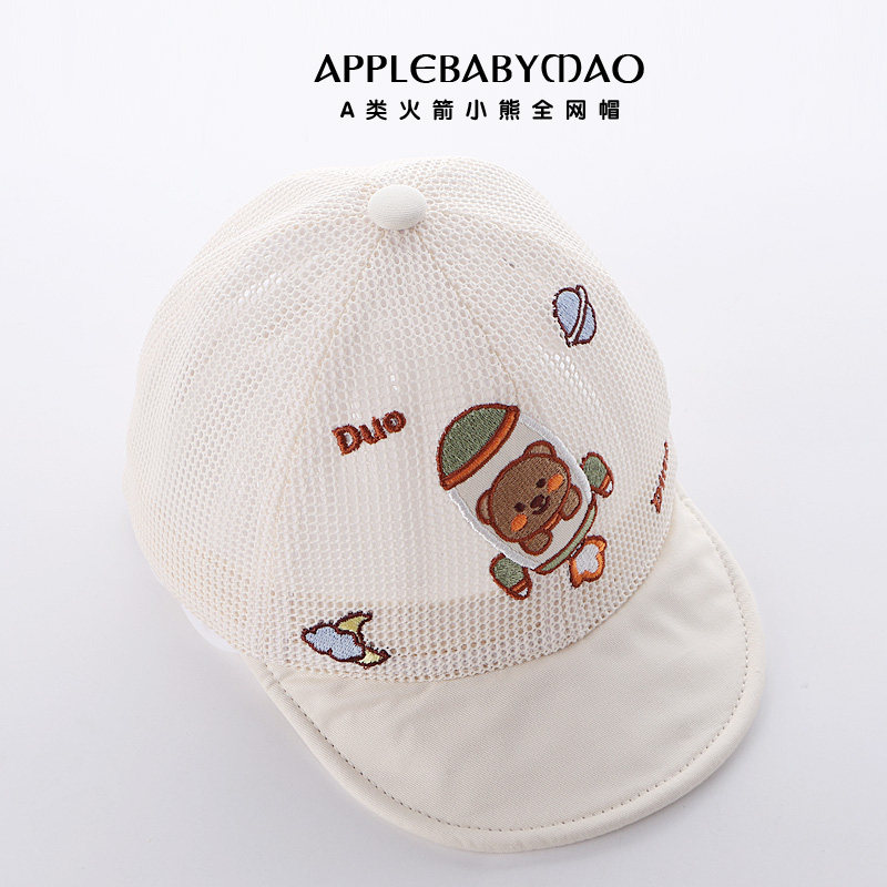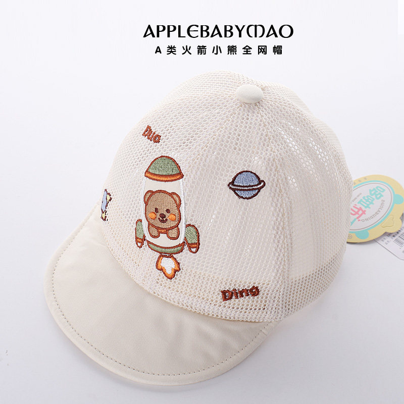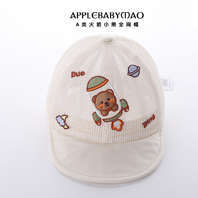 哆啦布丁夏季男宝宝帽子火箭小熊鸭舌帽儿童外出透气百搭卡通凉帽