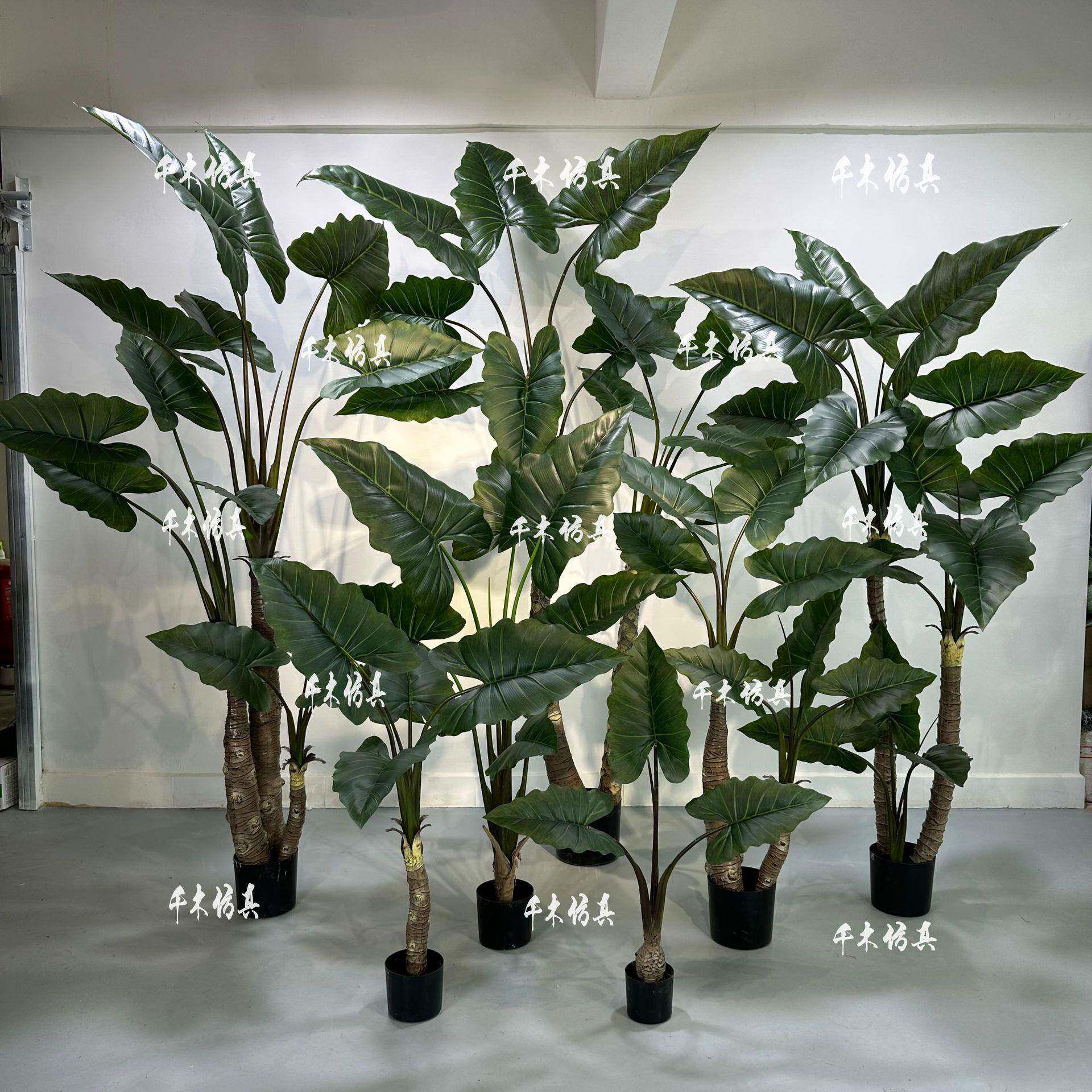 高端仿真绿植彩虹芋仿生热带植物假树盆栽海芋造景观假芋头树造景