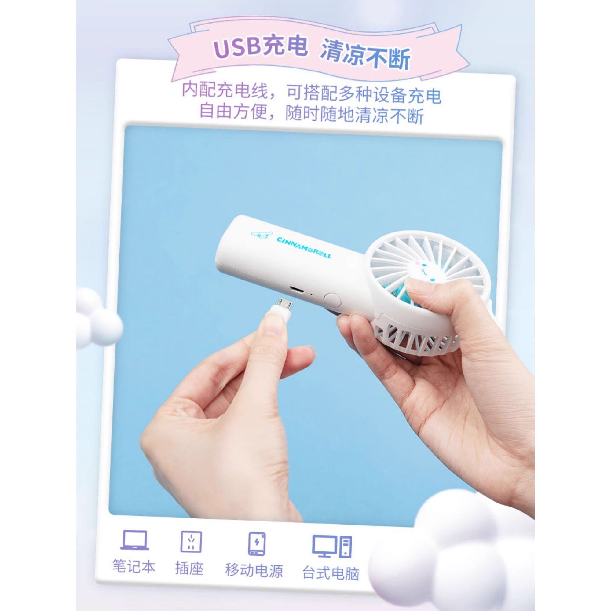 MINISO名创优品玉桂狗1800mAh迷你小风扇夏日可爱充电手持库洛米