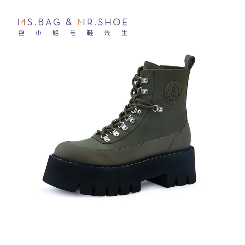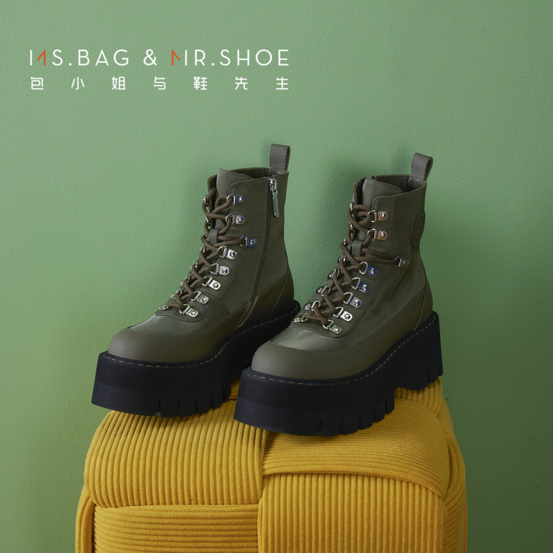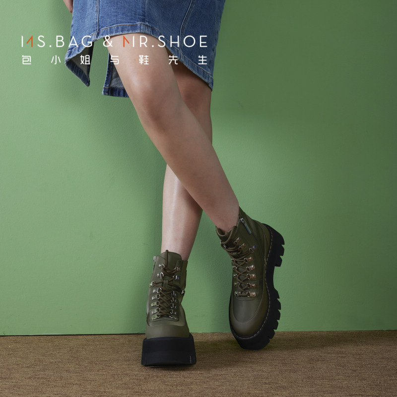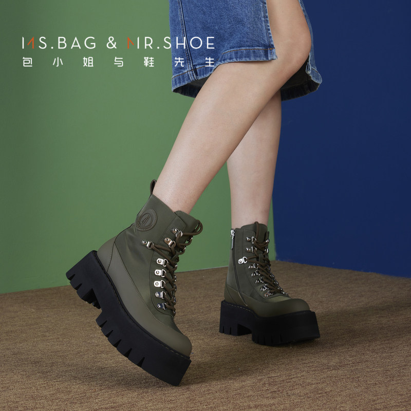 包小姐与鞋先生冬款厚底免系带防水布城市户外短靴女