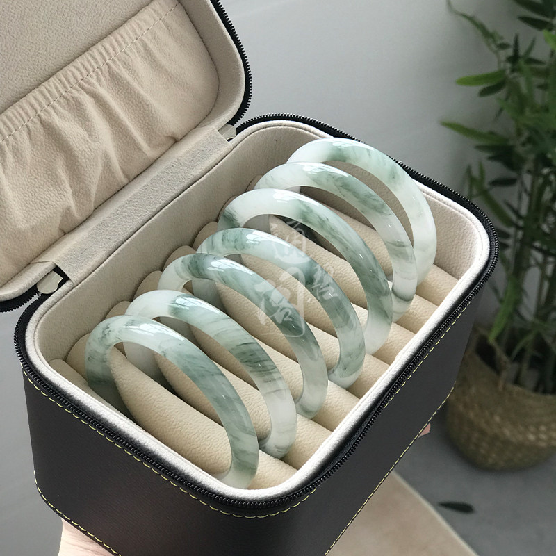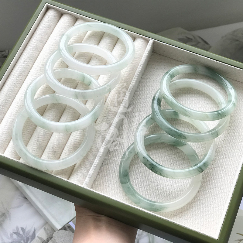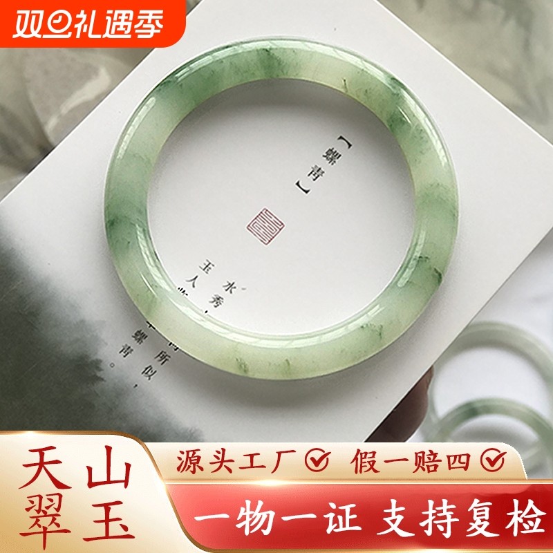 天然新疆天山翠金丝玉冰翠飘花玉镯女款雪翠手镯圆条扁镯子非翡翠